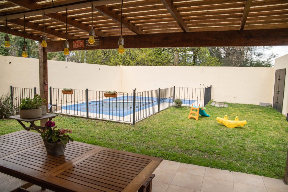 En el patio tiene una galería de madera y una pileta de material totalmente perimetrada.